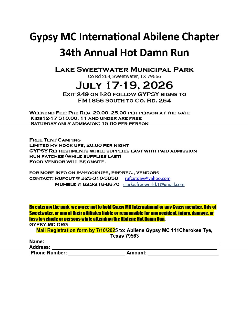 34th Annual Hot Damn – Gypsy MC Abilene