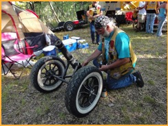 After the awards the band cranked up, the bar continued serving and chapters continued hosting their campsite parties throughout the night. The campsite was quiet the next morning until about eight o’clock when members began to stir and those who were traveling home began to break camp. Those who stayed either nursed hangovers, rode the historical marker fun run or laid back at their campsites and visited with members as they drifted through the campground. The parties on Sunday night were a lot more sedate - more like campfire conversations than Mardi Gras extravaganzas. Those who stayed until Monday helped clean up the campgrounds with many of the Area A members.