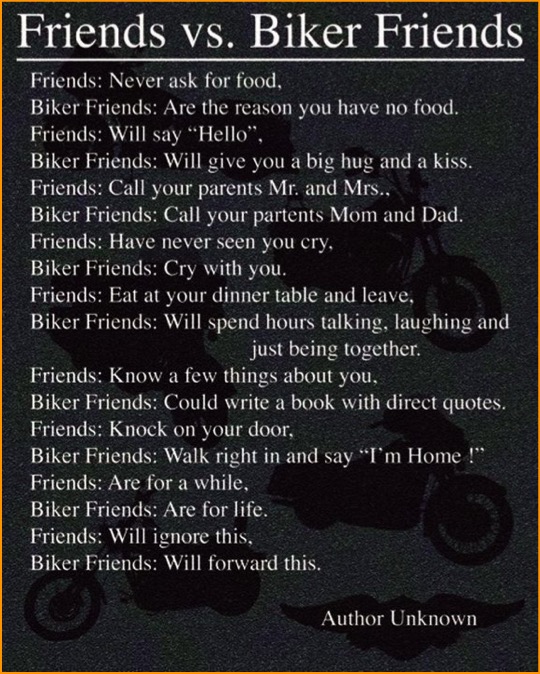 Friends vs Bike Friends - Author Unknown